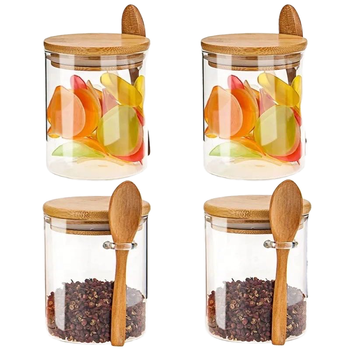 YOLOWE HOME 10oz barattoli di vetro moderni con coperchi di bambù PP contenitori per alimenti da cucina per la notte avena e spezie per sottaceti U